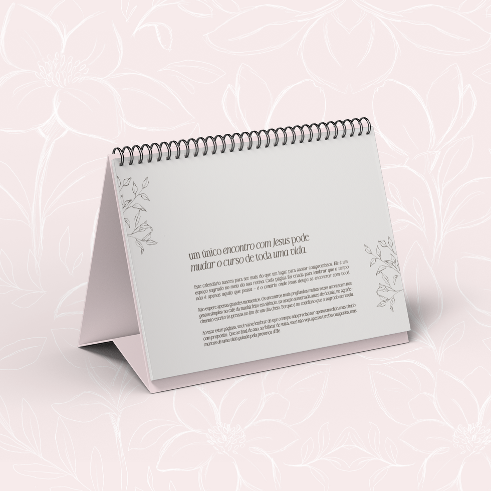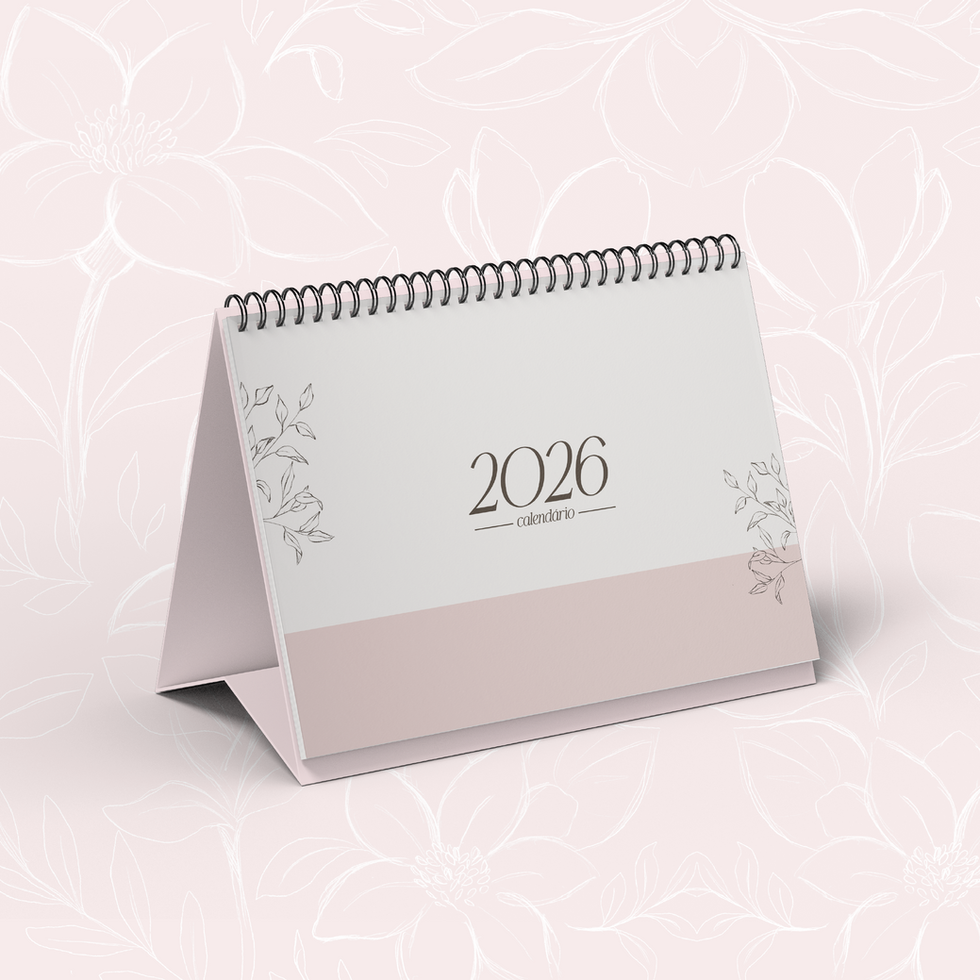 Calendário personalizado no tamanho A5, base revestida em capa dura, folhas impressas em 180g com acabamento matte (grossinhas e foscas) e fechados com wire-o.