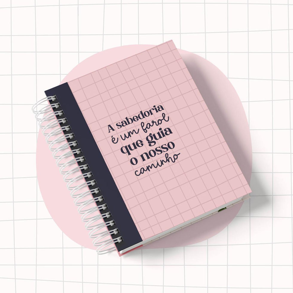 Capa dura, tamanho A5, 310 páginas de 90g e wire-o combinando com a capa.